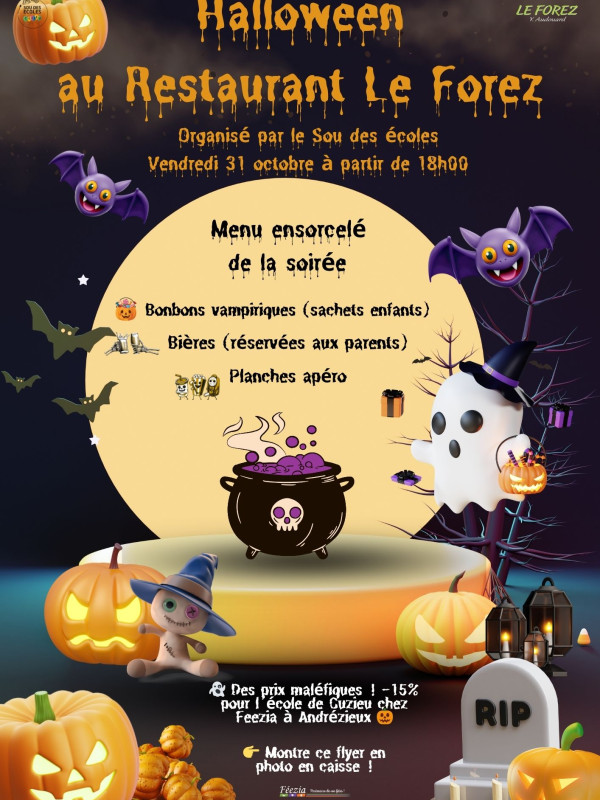 🎃 Soirée Halloween – Vendredi 31 octobre dès 18h au Restaurant Le Forez ! 👻